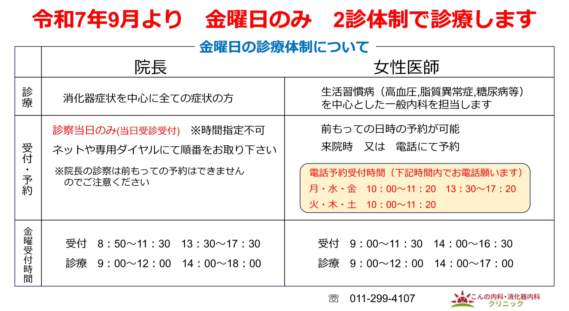 女性医師外来開始のお知らせ 診療日 毎週金曜日(2025年9月5日~)